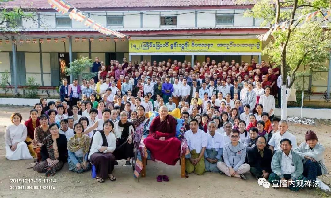 2019年12月5日,第一次在12月初举办加巴当国际禅修营。全部禅修者约200余人,来自世界各地,其中缅甸本地人占多数,第二多就是中国营员,图为禅修营快结束时,华纳大师和所有禅修者合影留念。