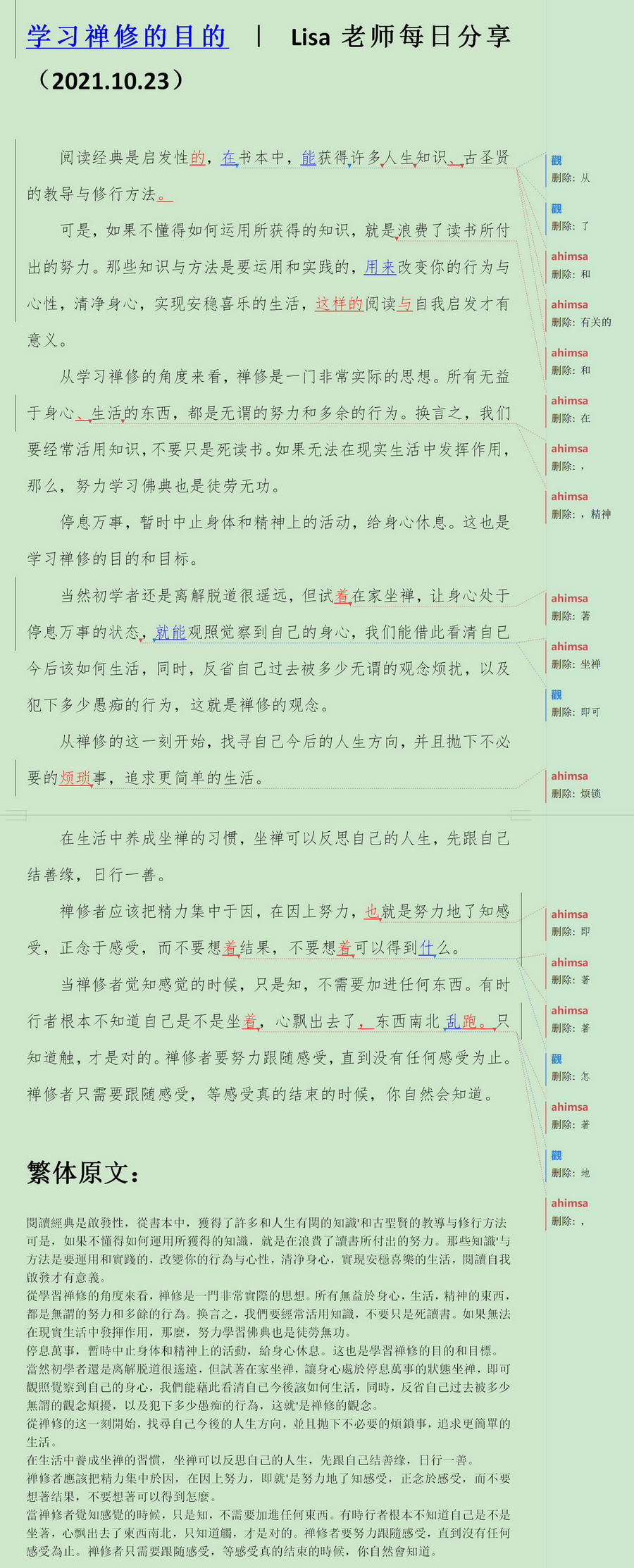 从禅修的这一刻开始,找寻自己今后的人生方向,并且抛下不必要的烦琐事,追求更简单的生活。